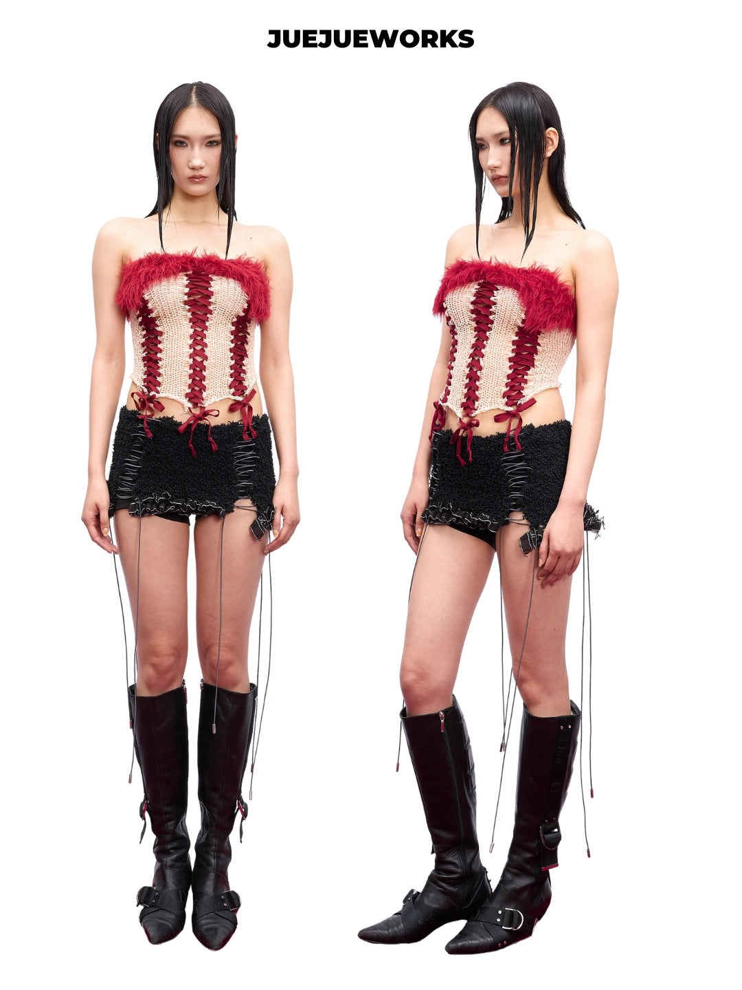 JUEJUEWORKS Hand-Knit Tube Top in Red
