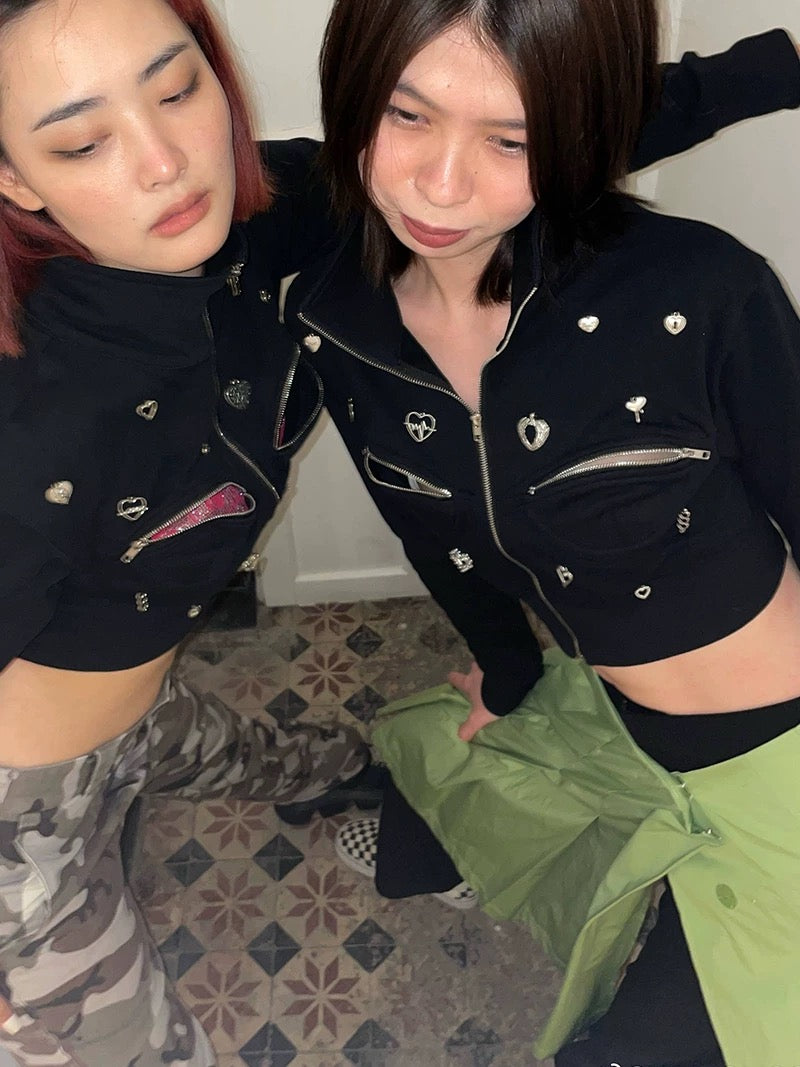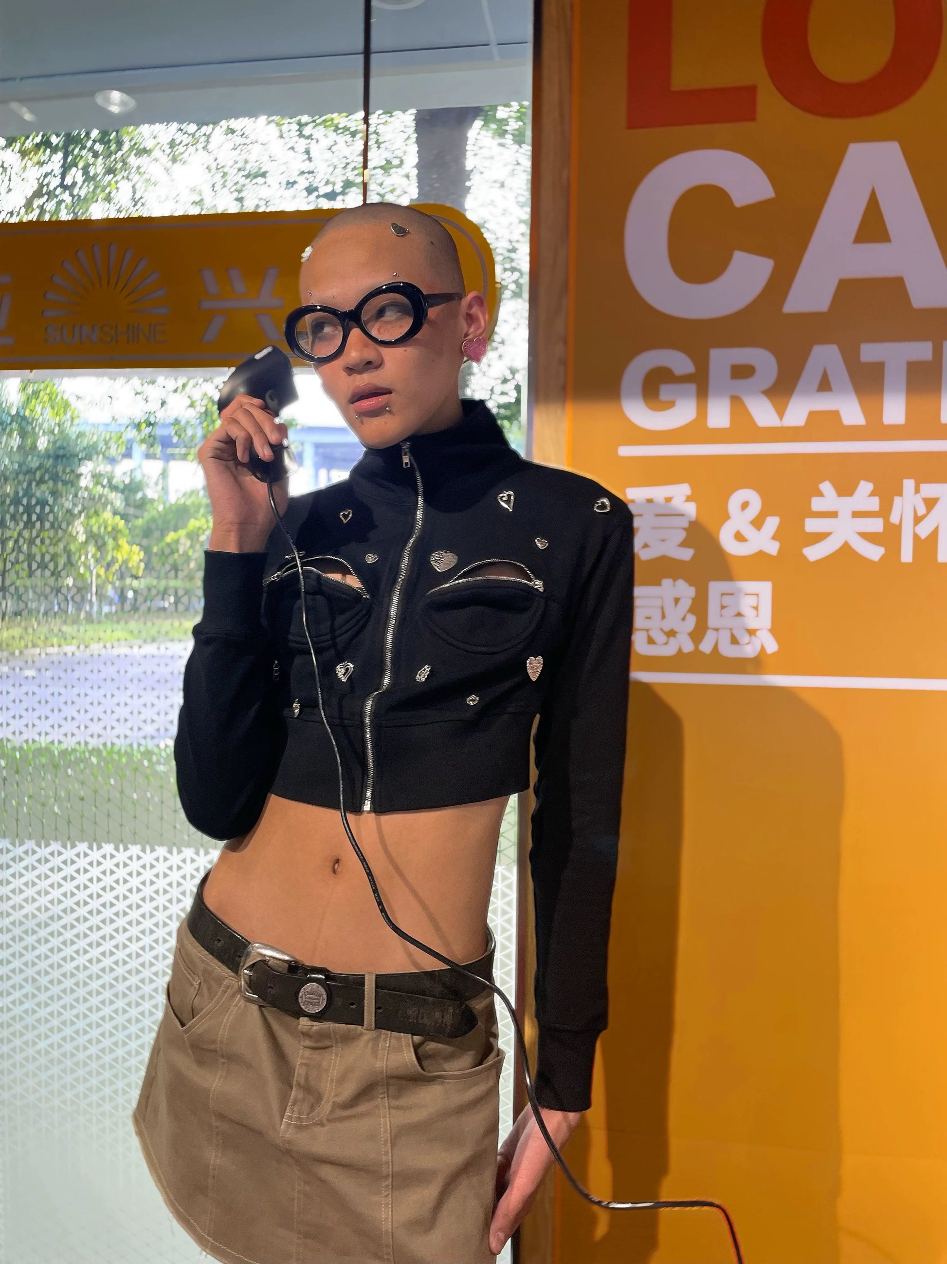 Fruitanari Zip-Up Hoodie In Black With Cut Out Detail